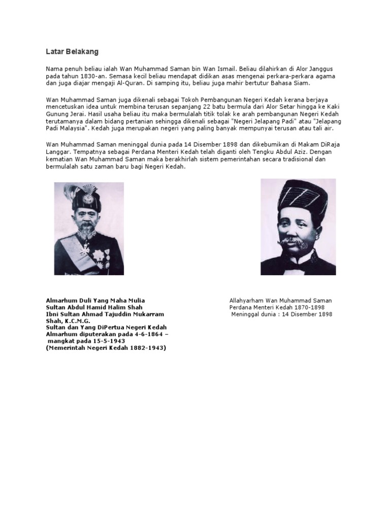 Latar Belakang Negeri Kedah Portal Rasmi Kit Perkhidmatan Awam Negeri Kedah from ikit.kedah.gov.my Semenjak indonesia memproklamasikan kemerdekaannya pada 17 agustus 1945, perjuangan pemerolehan kemerdekaan indonesia tidak berhenti begitu saja. Yaitu uraian dari suatu paragraf yang menjelaskan tentang alasan mengapa suatu karya tulis dibuat. Menjadi latar belakang bagi upacara penting seperti sambutan hari kebangsaan pada 31 ogos dan pertunjukkan tahun baru. Bahagian perumahan adalah sebahagian daripada organisasi di pejabat setiausaha kerajaan negeri kedah darul aman. Negeri kedah darul aman merupakan salah sebuah negeri di malaysia yang diliputi oleh hutan tropika yang mempunyai ekosistem alam semulajadi sangat kompleks di dunia. Latar belakang sejarah melaka kesultanan melay. Daerah yan adalah sebuah daerah yang unik dalam negeri kedah. Salah satu kolom reaktor yang digunakan dalam skala industri adalah kolom berjejal atau packed bed.